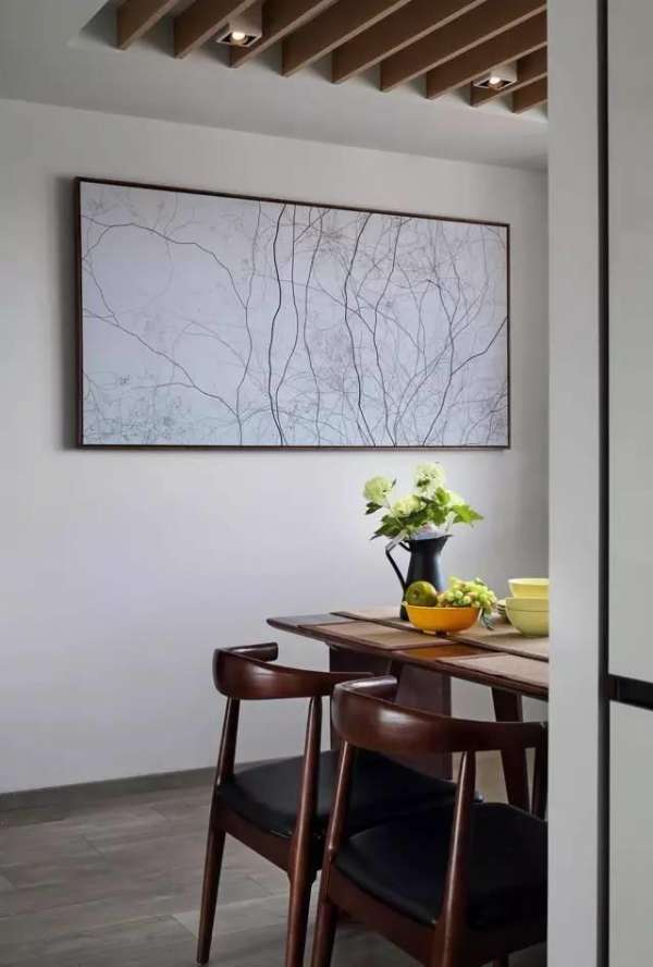 ▲說到藝術(shù)家,墻上的這幅畫只有看得懂的人才覺得這是藝術(shù)。以黑白雙色輔以粗細不同的線條,勾勒出叢林,帶著些新國畫的調(diào)調(diào)。設計師為了挑選出它,可花了不少精力呢,跑遍了南京大大小小的軟裝市場。