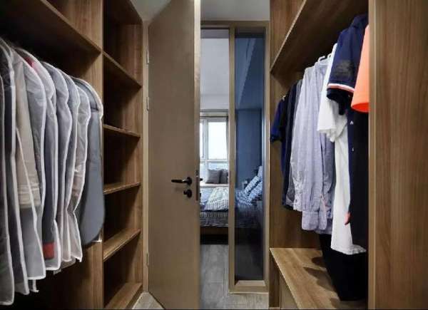 ▲綜合考慮之后,將主臥的衛(wèi)生間改造成了一個步入式衣帽間。一間顏值高又實用的衣帽間,完全滿足了業(yè)主的收納需求。