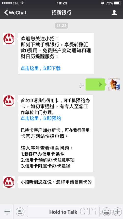 在招商銀行的WeChat帳戶中,所采用的是小i系統,它支援語音信息,分析用戶提出的問題,如「怎樣申請信用卡」,并即時提供答案。小i機器人總裁及CTO朱頻頻稱,招行使用智能客服后,雖然減少客服人手,但客服并無失業,只是改為從事更多關于市場營銷的工作。他相信,智能客服不會搶人的飯碗,因人類不能只從事重復性高、低水平的工作,可從事更多具創意的工作。