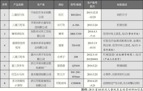 看著商場(chǎng)里琳瑯滿目的兒童玩具,不得不感嘆現(xiàn)在的小朋友太幸福了。然而,幸福中也存在著隱患。日前,記者從浙江省質(zhì)監(jiān)局了解到,優(yōu)貝兒童自行車、丹妮奇特多功能翻板計(jì)算架、嬰愛喜嬰兒學(xué)步車等16個(gè)批次的兒童玩具存在缺陷,寧波優(yōu)貝車業(yè)有限公司等14家企業(yè)將召回這些問題玩具。
