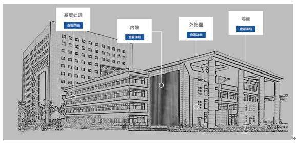 建筑是一個(gè)系統(tǒng),涂裝體系同樣如此。拒絕單一的產(chǎn)品介紹,立邦工程為您提供的是基于從底到面,從地到墻的整體涂裝解決方案。要了解不同區(qū)域的實(shí)際應(yīng)用,用戶可以點(diǎn)擊相應(yīng)位置的查看詳情了解更多。