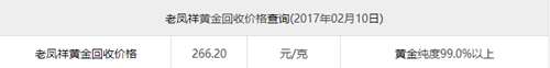 今日老鳳祥黃金回收價格最新官方報價,今日老鳳祥黃金回收價格最新多少一克(2017年2月10日)參考價格。
