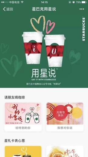 前不久,微信宣布與星巴克合作,在線下星巴克門店可使用微信付款,現(xiàn)在微信與星巴克攜手推出了“社交禮品體驗(yàn)”--用星說,用戶可以在線購(gòu)買單杯咖啡兌換卡或“星禮卡”(儲(chǔ)值卡)贈(zèng)送給微信好友,并在贈(zèng)送界面用文字、圖片、視頻留下你對(duì)TA的專屬祝福。
