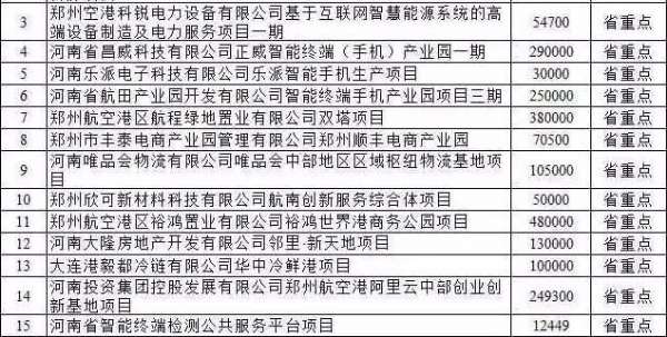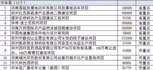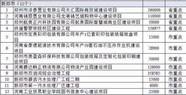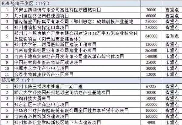 中原區3個,包括河南安德科技產業園建設項目、河南康泰養老產業發展股份有限公司康泰國際養老中心項目、盛世中原等。