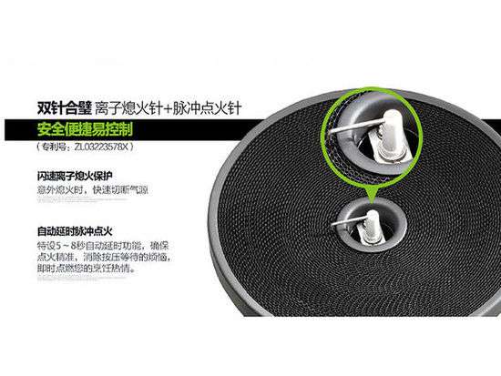 雙針合璧離子熄火針加脈沖點火針,意外熄火時,快速切斷氣源。特設(shè)5-8秒自動延時功能,確保點火精準,消除按壓等待的煩惱。