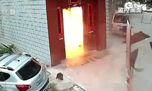 驚悚一幕!液化氣黑作坊爆炸:門板被炸飛 著火男子逃出
