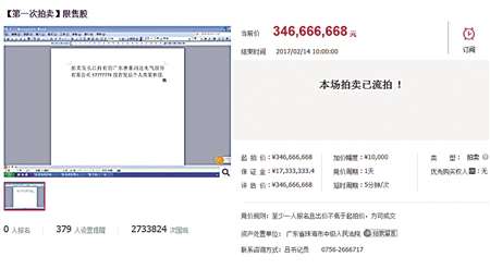 吳長江所持1.3億股A股流拍 網(wǎng)頁截圖