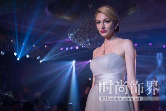 的新款珠寶首飾,歐式發(fā)髻盤于腦后,笑容親切甜美,目光水波般閃閃,猶如仙子降臨般驚艷全場(chǎng),引發(fā)陣陣轟動(dòng)。