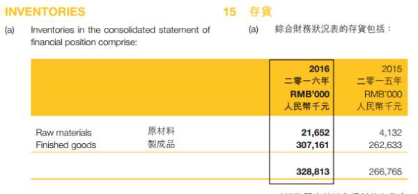 值得注意的是,期內(nèi),其庫存周轉(zhuǎn)天數(shù)從2015年的93天增長(zhǎng)到了2016年的180天,整整翻了1倍,而不管是原材料還是制成品存貨都遠(yuǎn)超2015年。