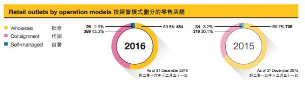 “我們計(jì)劃于未來數(shù)年逐漸增加以代銷模式經(jīng)營(yíng)的零售店鋪數(shù)目,預(yù)計(jì)2018年年底70%零售店鋪采用代銷模式經(jīng)營(yíng)。”