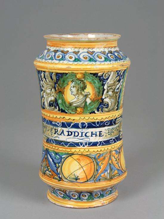 藥罐 杜蘭特堡的西蒙?達(dá)?科隆內(nèi)洛工坊 16世紀(jì)下半葉 錫釉陶 高29.7厘米、肩徑16.5厘米