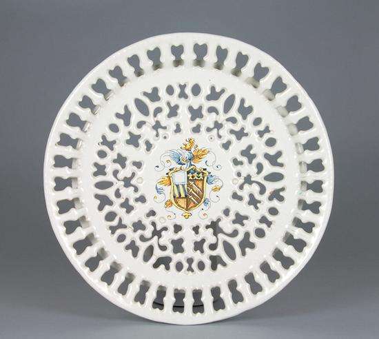杰斯拉蒂斯巴達(dá)紋章盤(pán) 法恩扎 約1636年 錫釉陶 高4.5厘米、直徑 38.5厘米
