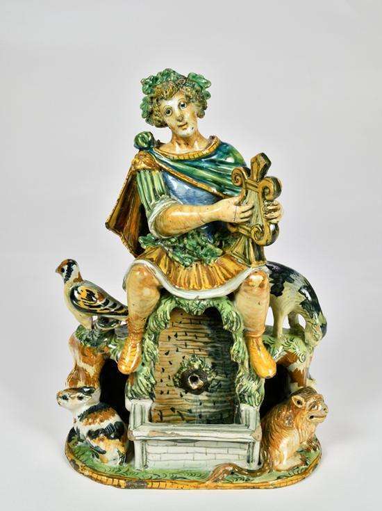 人像水罐 烏爾比諾的潘塔納茲工坊 16世紀(jì)末期 錫釉陶 高34.5厘米、長(zhǎng)23.5厘米、寬14.7厘米