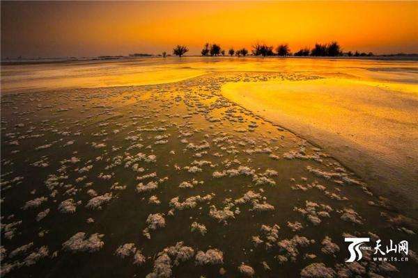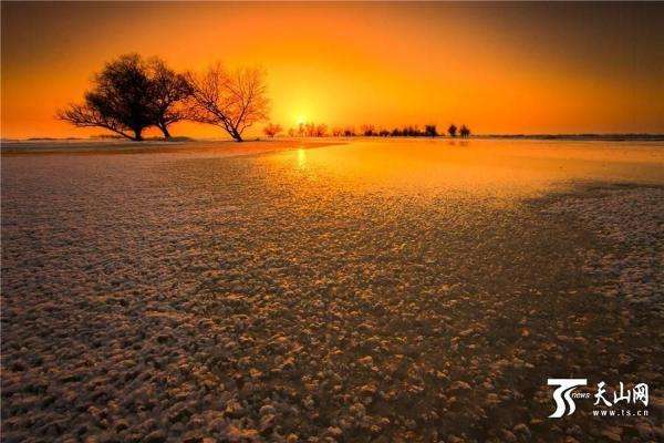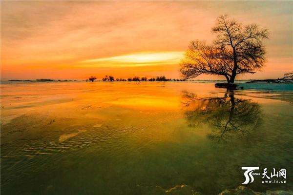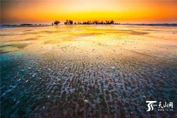 2月18日傍晚拍攝的新疆額敏縣額敏河風(fēng)光。初春的傍晚,夕陽西下,晚霞染紅了額敏河半邊天,色彩斑斕,美如仙境。初春的額敏河有的河段還結(jié)著厚厚的冰,河面還泛著冰花,而有的河段水流依舊,冰冷刺骨的河水侵蝕著河邊的融冰,形成大自然鬼斧神工的奇特景觀。天上網(wǎng)特約記者 胡友明 攝