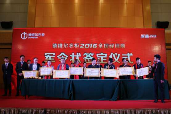 同心,同夢方能贏戰(zhàn)2016。德維爾衣柜的發(fā)展離不開每一位優(yōu)秀經(jīng)銷商伙伴的努力,在這一天,經(jīng)銷商們在氣勢如虹的經(jīng)銷區(qū)域團(tuán)隊(duì)的伴隨下簽下軍令狀,向公司承諾2016年的營銷任務(wù)。大家齊心協(xié)力、同心同德,為目標(biāo)而全力以赴,就一定能夠成功完成公司2016年度銷售業(yè)績目標(biāo)。在這同一天晚上,全國各大區(qū)舉辦區(qū)域營銷峰會,布局未來,定下2016年?duì)I銷方案。