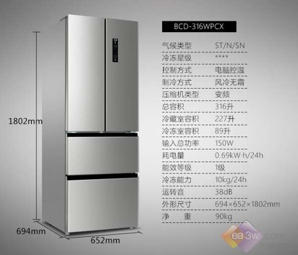 在選購冰箱上,很多人對法式冰箱情有獨鐘。法式冰箱以其充滿浪漫主義的造型設計和超大的存儲空間,一直受到眾多消費者的親睞,有數據顯示,近年來,市場上對于高端大冰箱的需求持續增長,法式冰箱的市場占有率也在逐年提升。本期筆者就為大家推薦一款適合一般家庭使用的法式多門冰箱,這就是美菱(MeiLing)BCD-316WPCX變頻冰箱。
