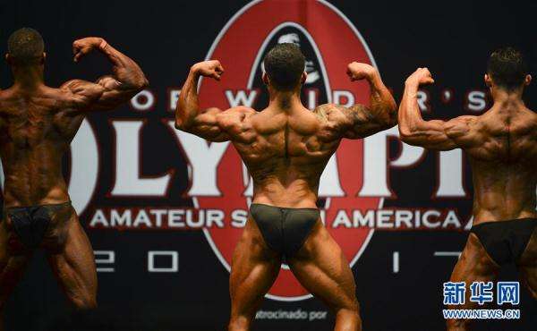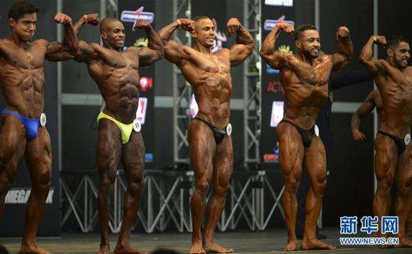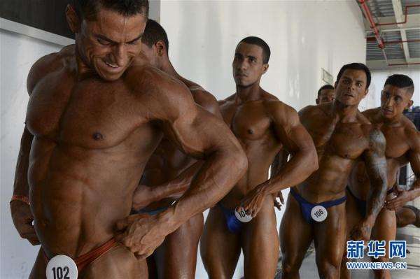 2月18日,在哥倫比亞的麥德林,男選手們參加南美奧林匹亞業(yè)余健美比賽。 新華社/路透