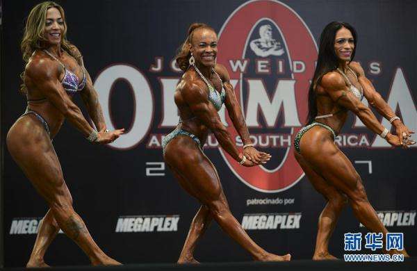 2月18日,在哥倫比亞的麥德林,三名女選手參加南美奧林匹亞業(yè)余健美比賽。 新華社/路透