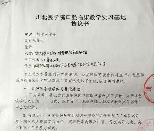華美牙科“川北醫(yī)學(xué)院口腔臨床教學(xué)實(shí)習(xí)基地”協(xié)議簽訂
