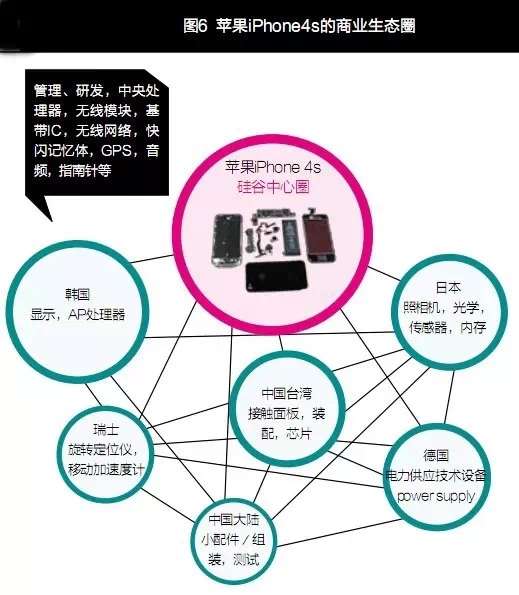 統(tǒng)一嚴(yán)格的標(biāo)準(zhǔn):將不同任務(wù)發(fā)布到全球,用嚴(yán)格的標(biāo)準(zhǔn),精挑細(xì)選出那些有相同價(jià)值觀、有對客戶和技術(shù)品質(zhì)相同信仰、有人文關(guān)懷同理心的專業(yè)化企業(yè),作為其生態(tài)成員。能進(jìn)入蘋果生態(tài)的企業(yè),不是優(yōu)秀的企業(yè),而是卓越的企業(yè)。這個(gè)生態(tài)連接了多個(gè)國家的專業(yè)公司(見圖6)。