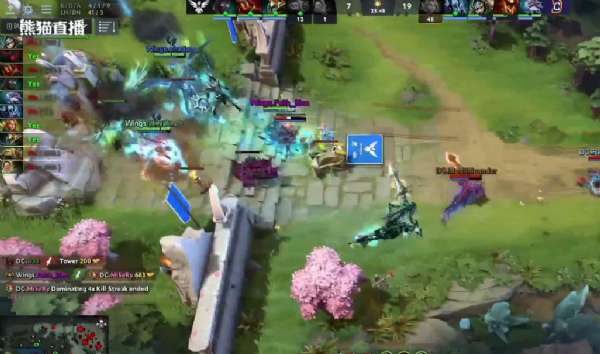 隨后的劇情就如同人們想象的那樣,Wings逐步推進到了DC高地,然后出現了先前看到的一幕,在DC塔防交掉之后,土熊貓加上靈動迅捷后,不到5秒鐘,高地塔直接沒了,而近戰兵營更夸張,只要4下,4下DC就被打出了超級兵。而DC眾人看著這個自帶魔免,血多甲厚的土熊貓完全是無可奈何......