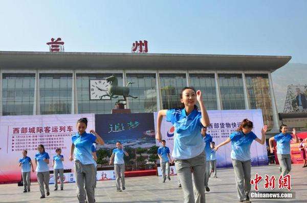 9月24日,百名蘭州西客站準“高哥”、“高姐”在蘭州車站廣場宣誓明責、展現(xiàn)才藝、勁歌熱舞、發(fā)放傳單,竭力向現(xiàn)場旅客和市民推介鐵路客運便民舉措和業(yè)務。據(jù)蘭州火車站工作人員介紹,隨著蘭(蘭州)新(新疆)客專建設進入收尾階段,蘭州鐵路局即將跨入高鐵時代。當日,多彩的畫面和豐富的視覺體驗增強了在場旅客和貨主對“西部城際客運列車”和“西部貨物快運”的了解。圖為9月24日,百名蘭州西客站準“高哥”、“高姐”在蘭州車站廣場宣誓明責、展現(xiàn)才藝、勁歌熱舞、發(fā)放傳單,竭力向現(xiàn)場旅客和市民推介鐵路客運便民舉措和業(yè)務。圖為:“