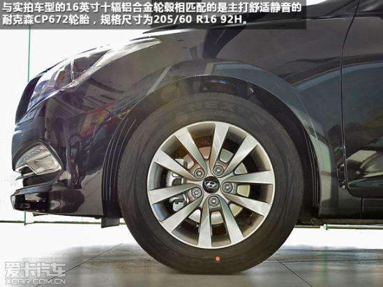 采用16英寸大小的十輻鋁合金輪轂,輪胎采用的是來自韓國的耐克森CP672,這是一款主打靜音和舒適的產品,規(guī)格尺寸為205/60R1692H;而配置更高的1.8L自動尊貴DLX型、2.0L自動至尊LUX型和2.0L自動旗艦TOP型則采用了215/50R17規(guī)格尺寸的輪胎。現(xiàn)代名圖銷售咨詢熱線:13269421966伍經理