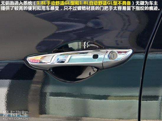 實拍車型配備的方向盤雖然不是真皮包裹,但手感還算舒適,并沒有明顯的塑料感;另外,集成的多功能按鍵涵蓋了音量控制、定速巡航以及菜單控制等功能,和更高配的型號相比只是缺少了藍牙電話的功能。