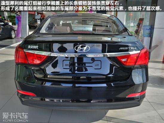 2016款現(xiàn)代名圖的車尾造型相對來說顯得比較簡單,而被行李廂蓋上的長條鍍鉻飾條所貫穿左右的尾燈組則又以犀利的造型表現(xiàn)出了明顯的視覺反差效果,和鷹眼一般的前大燈組形成了非常不錯的呼應效果。