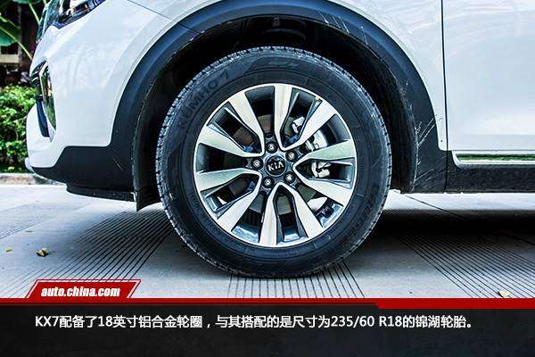 KX7配備了18英寸鋁合金輪圈,與其搭配的是尺寸為235/60R18的錦湖輪胎。