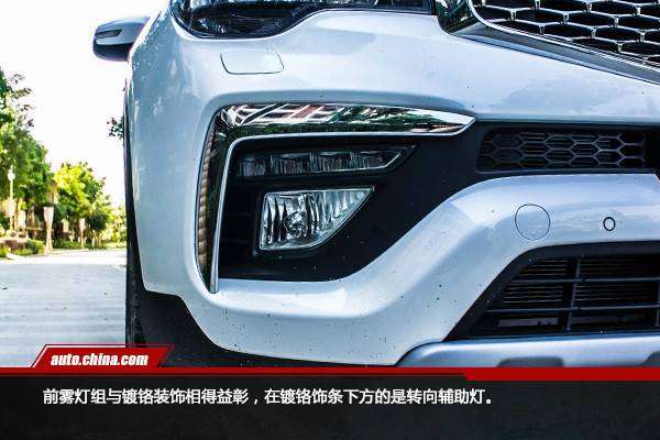 前霧燈組與鍍鉻裝飾相得益彰,在鍍鉻飾條下方的是轉(zhuǎn)向輔助燈。