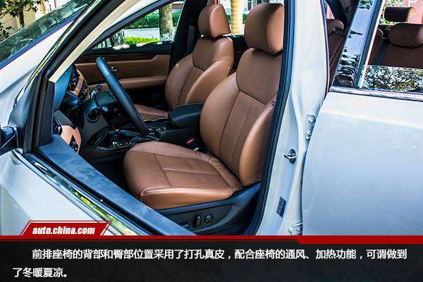 前排座椅的背部和臀部位置采用了打孔真皮,配合座椅的通風(fēng)、加熱功能,可謂做到了冬暖夏涼。