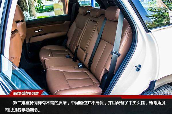 第二排座椅同樣有不錯(cuò)的質(zhì)感,中間座位并不局促,并且配備了中央頭枕,椅背角度可以進(jìn)行手動(dòng)調(diào)節(jié)。
