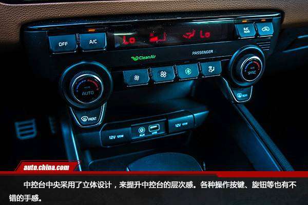中控臺(tái)中央采用了立體設(shè)計(jì),來(lái)提升中控臺(tái)的層次感。各種操作按鍵、旋鈕等也有不錯(cuò)的手感。