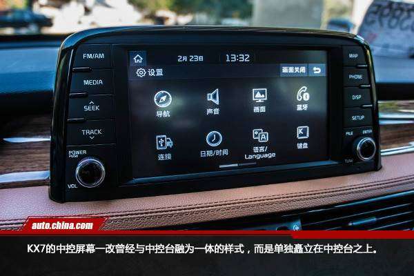 KX7的中控屏幕一改曾經(jīng)與中控臺(tái)融為一體的樣式,而是單獨(dú)矗立在中控臺(tái)之上。
