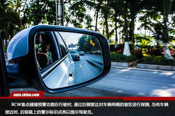 BCW盲點(diǎn)碰撞預(yù)警功能在行駛時(shí),通過(guò)后側(cè)雷達(dá)對(duì)車輛兩側(cè)的盲區(qū)進(jìn)行探測(cè),當(dāng)有車輛接近時(shí),后視鏡上的警示標(biāo)識(shí)點(diǎn)亮以提示駕駛員。