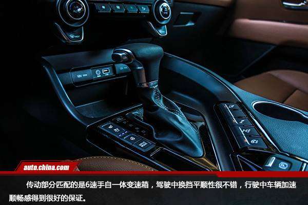 傳動(dòng)部分匹配的是6速手自一體變速箱,駕駛中換擋平順性很不錯(cuò),行駛中車輛加速順暢感得到很好的保證。