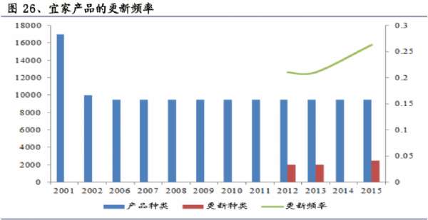 產品價位通常低于傳統經銷商20%,比一般家居零售企業低約10%-15%,且每年保持超過2500種商品更新(占比25%-30%)和老產品的降價(幅度在5%-20% )。