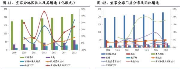 (1999-至今)全球供應鏈優化:隨著宜家規模的擴大,企業供應鏈、內部管理問題制約企業成長。公司在持續進行大規模門店擴張的同時,加強從設計、生產到采購、物流等各環節的供應鏈優化、提升效率,宜家 2015年營業收入達到327億歐元(2373 億人民幣)。
