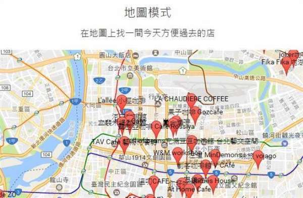 咖啡地圖開放清單或地圖模式瀏覽,清單模式提供Wi-Fi穩(wěn)定、通常座位、咖啡美味以及價格程度評分機(jī)制,用戶可依照個人需求篩選排列,找到符合條件的咖啡店;地圖模式則可直接透過地圖,根據(jù)所在縣市、地點(diǎn),挑選一間當(dāng)天方便前往的店家;同時也導(dǎo)入各咖啡廳臉書粉絲團(tuán)動態(tài),咖啡迷能即時掌握最新訊。