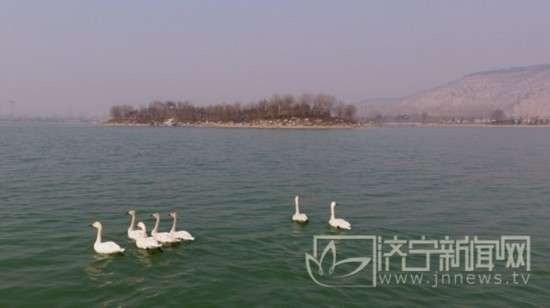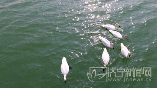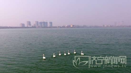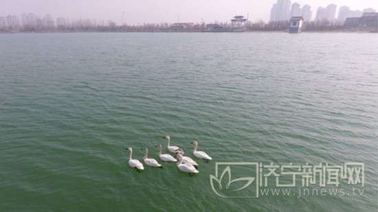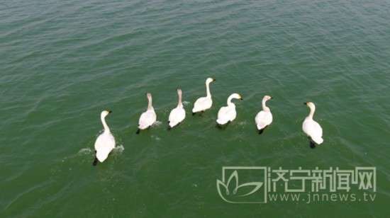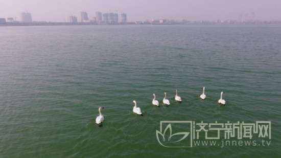 七只 小天鵝 時而在空中盤旋,時而在湖面嬉戲、覓食,時而展翅滑翔、輕盈踏水,時而引頸長鳴、呼朋引伴,為 水泊梁山 這片美麗的山水增添了一份靈氣和生動,形成了一道獨特的風(fēng)景。