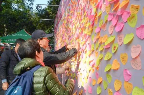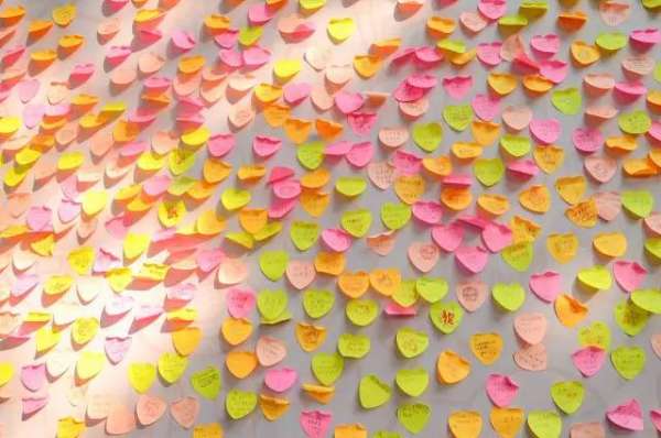 各式各樣的心形便利貼出現(xiàn)在墻上