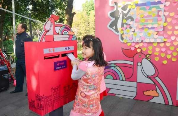 (圖為兩個(gè)小女孩往郵箱里投明信片)