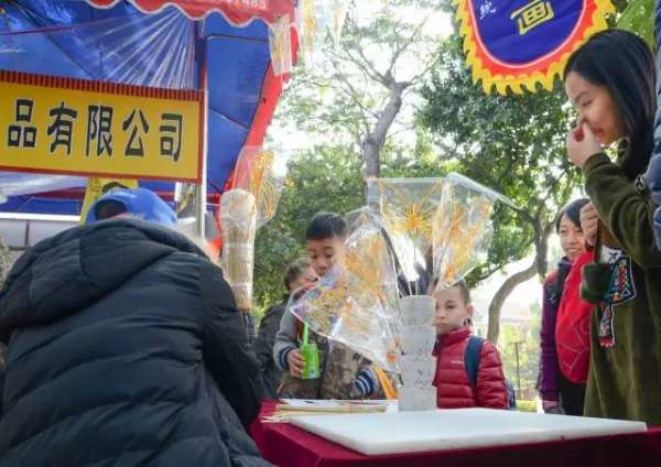 大人小孩都目不轉(zhuǎn)睛地在等攤主重新“繪制”糖畫
