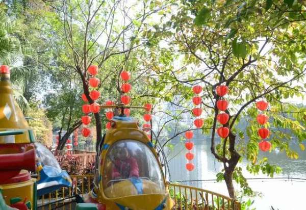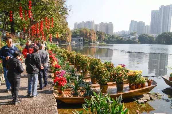 荔灣湖公園就被歡笑聲和新年的喜慶聲環(huán)繞著