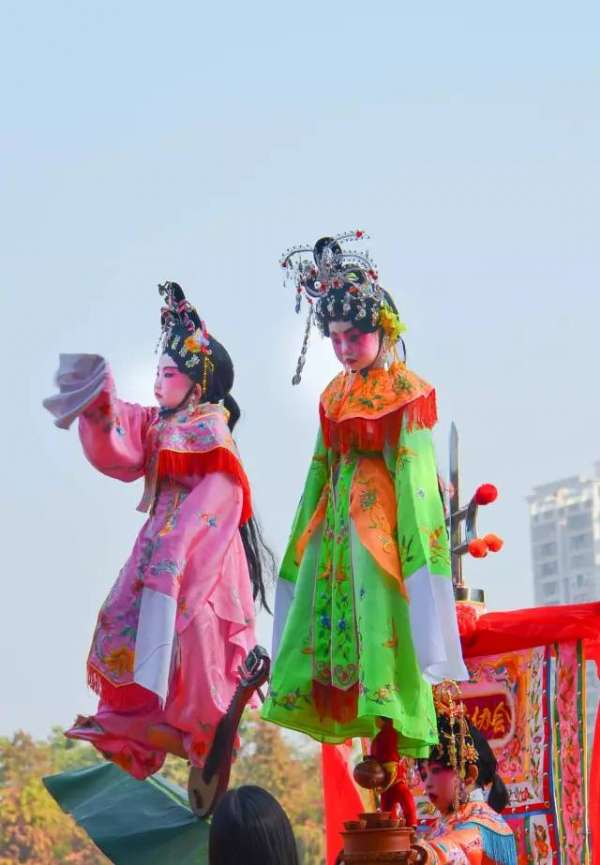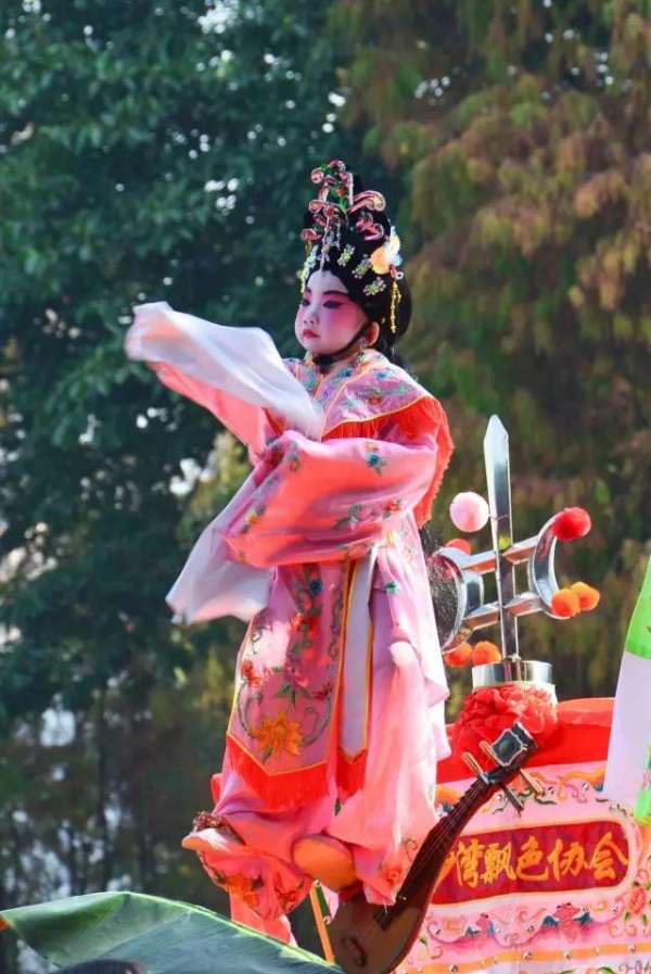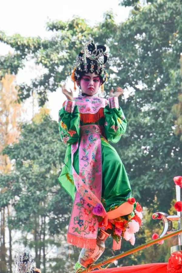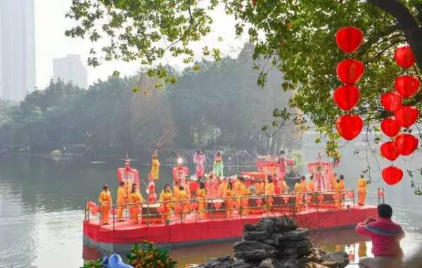 傳統(tǒng)的沙灣飄色都是一個(gè)色柜接一個(gè)色柜有序地穿行于大街小巷本次水上飄色則結(jié)合荔枝灣獨(dú)特的“水”文化及花船巡游特色節(jié)目,以荔枝灣八艘花船和一個(gè)浮臺(tái)為表演“舞臺(tái)”,將其引入水上進(jìn)行表演,飄色全都固定在五彩繽紛的浮臺(tái)上,隨花船引領(lǐng),“飄”于水上,隨著湖水的律動(dòng),將沙灣飄色“精、巧、奇、艷”的特點(diǎn)表現(xiàn)到極致。