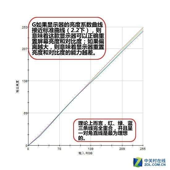 我們對AOC\u00A0Q2781PS曲線測試的意義在于,Gamma(亮度色標(biāo))是在視頻/圖像中用于編碼和解碼的一個非線性操作的名稱,如果顯示器的亮度系數(shù)曲線接近標(biāo)準(zhǔn)曲線(光度2.2下),則意味著這款顯示器可以正確重置屏幕亮度和對比度;如果偏離越大,則意味著顯示器重置亮度和對比度的能力越差。