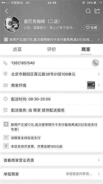 昨天,部分市民收到一條短信,大意是餓了么平臺充斥大量星巴克咖啡代購“黑店”,致使星巴克退出餓了么平臺并轉至美團外賣。經核實,美團和星巴克咖啡均否認向顧客發送該短信。北京青年報記者調查發現,美團、餓了么等外賣平臺上所謂的“星巴克”,事實上都不是星巴克咖啡本店入駐,而是“跑腿兒”的代購公司。星巴克官方對于這樣的“代購”一律給予否認。市食藥監局表示,風險隱患極大,一旦出現食品摻假、調換等問題,或者消費者食用后出現身體不適,食品追溯、責任認定可能存在糾紛。