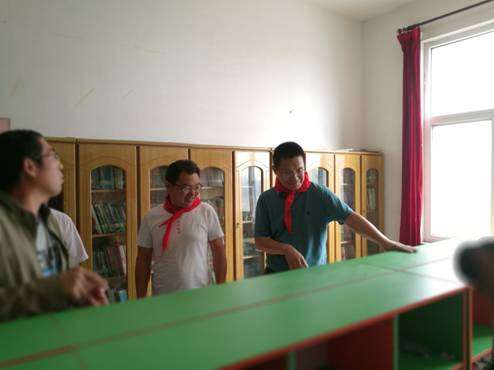 霍爾茨木門總經(jīng)理趙崇聯(lián)在參觀圖書室,發(fā)現(xiàn)書柜不合格,立馬決定為溫塘希望學(xué)校制作一批霍爾茨書柜。