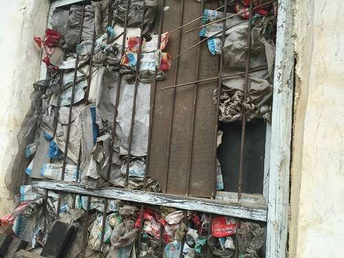 隨后,我們又走訪了同村的低保戶王金娃,我們發(fā)現(xiàn),現(xiàn)如今是舊教室改造的家里,依舊沒有一件像樣的家具,就連所謂的床也是用舊書桌堆砌而成的,這不禁讓人心里一顫。再向門外看去,寒冷的風(fēng)通過破舊的窗戶無情地刮進(jìn)這黑漆的小屋,加上用塑料袋和包裝紙封堵破損的玻璃,讓人心感酸楚,痛心不已。